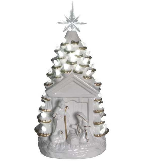 This white ceramic nativity scene is an elegant addition to your holiday decor. It is beautifully hand-painted and finished with a smooth gloss. It will brighten your home with twinkling lights. It’s a perfect gift to evoke warm memories of holidays past and to add a little holiday cheer to any space.