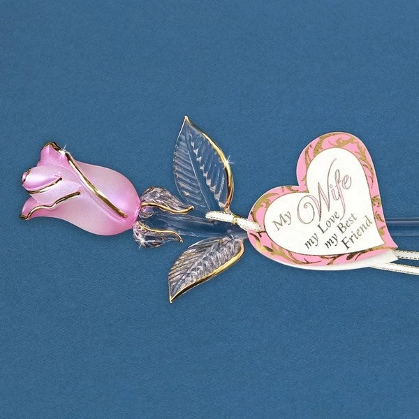 Express the love and care for your wife with this unique handcrafted glass art pink rose.