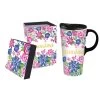 - Glazed ceramic mug features colorful flowers design and quote about mom.