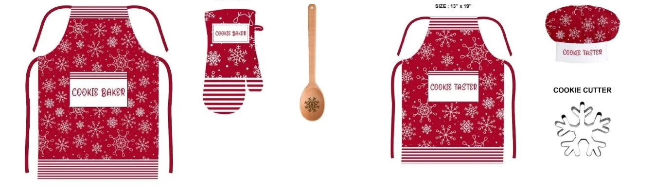 Adorned with cheerful winter motifs and colors, the mommy & me holiday kitchen apron and baking set allows you to create cherished memories and bond with your child while preparing delicious holiday treats together.