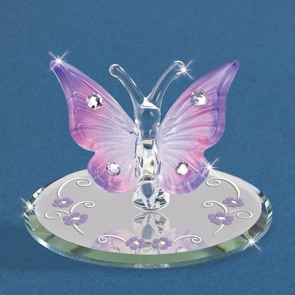 Lavender Butterfly With Crystals Glass Figurine