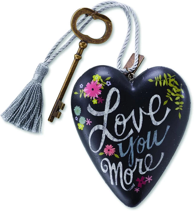 Heart-shaped keepsake symbolizes the bond of friendship and family through meaningful sentiment and vibrant design. It is a gift-ready sculpture with an inspirational message for that special person in your life. It makes a cherished gift for celebrating milestone moments or just because. This Art Heart comes with a special packaging and an ornamental key. Hang the Art Heart using its tasseled cord or make it stand with the attached key easel.Â