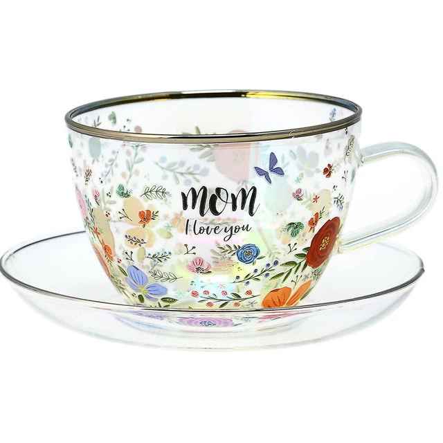 Mom I Love You Floral Glass Teacup And Saucer Set