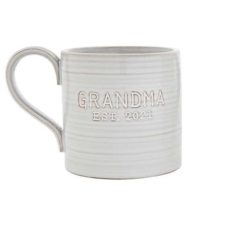 Give a unique gift to the new grandma that she will forever treasure. This beautifully glazed terra cotta mug has a debossed sentiment exterior. It celebrates the new Grandma, established 2021!