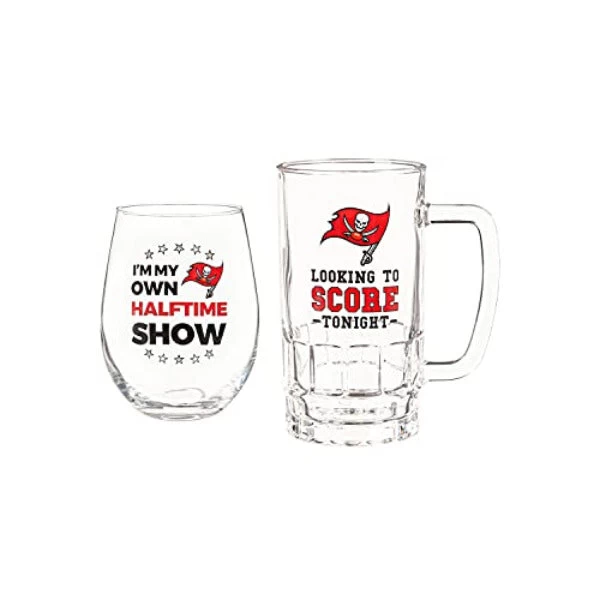 The Tampa Bay Buccaneers logo is clear and bold on this stemless wineglass and beer glass to cheer on your favorite team.