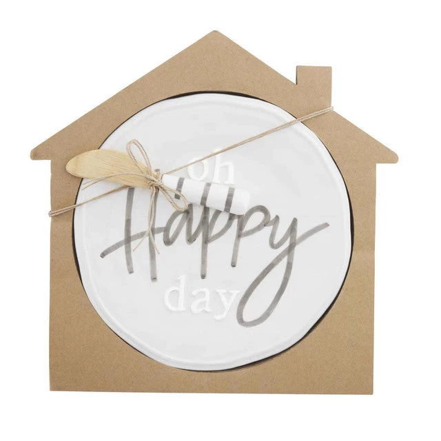 2-piece set. Hand-painted ceramic cheese plate. Comes with wooden and ceramic spreader.