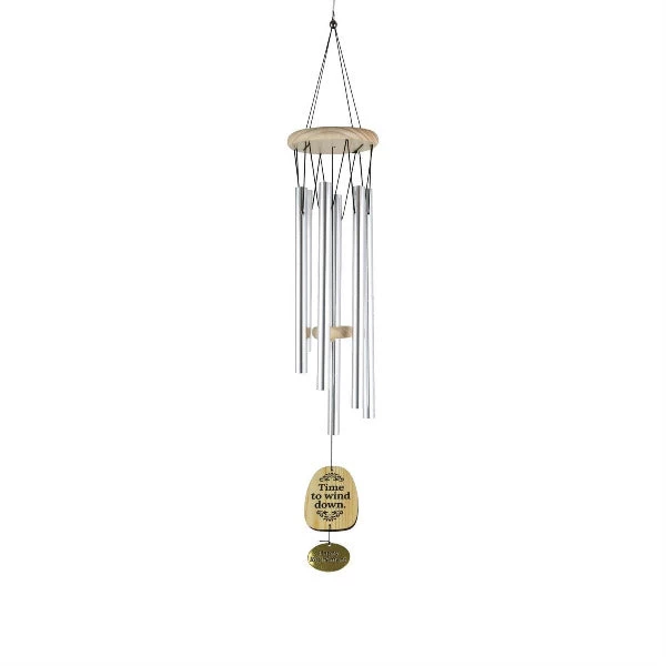 The sound of wind chimes is one of the most calming harmonies of a breezy day. Relax into the song of the wind with this inviting chime set by Our Name is Mud. Modeled for the retiree, these wooden and metal chimes remind when it’s time to wind down.