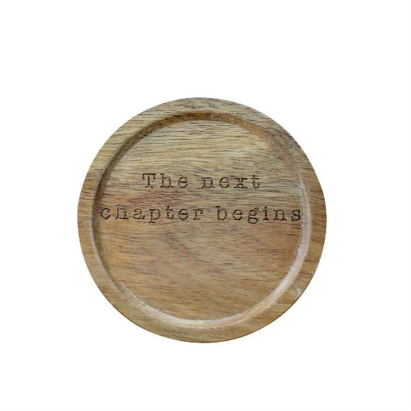 This simple 16 oz mug features a wooden lid that doubles as a coaster. With a sincere message of retirement, this cup welcomes its drinker into the next chapter of life. The wooden lid can be personalized with text. Cheers to new beginnings!