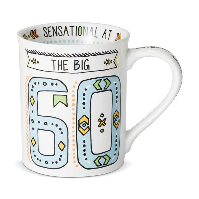 Enjoy your 60th birthday while sipping your favorite beverage with this uniquely designed mug. Being 60 years old means six perfect tens. It’s a big celebration day. 16 oz. capacity. Dishwasher and microwave safe.