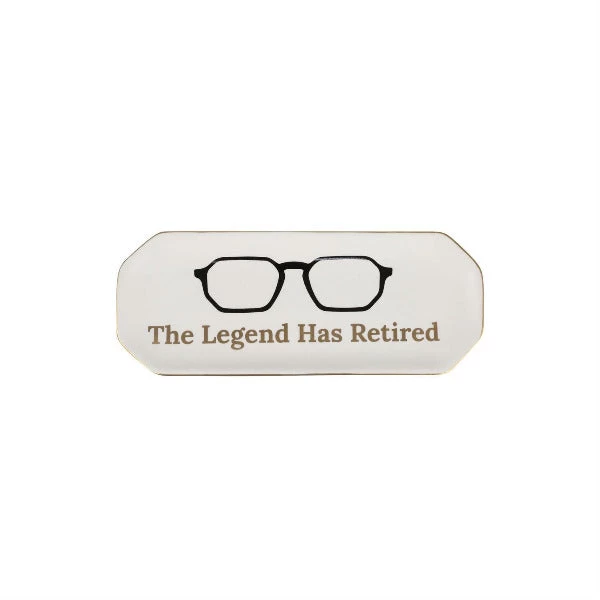 This white ceramic tray is outlined in gold and makes the perfect storage place for a retiree’s glasses. In golden text, a message reads the legend has retired and is sure to inspire a smile. This eye glass tray makes a charming retirement gift.