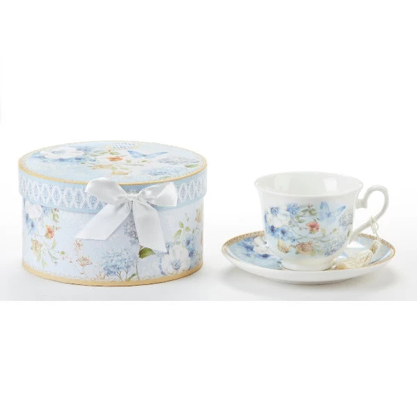 Porcelain Tea Cup & Saucer Blue Butterfly In Gift Box
