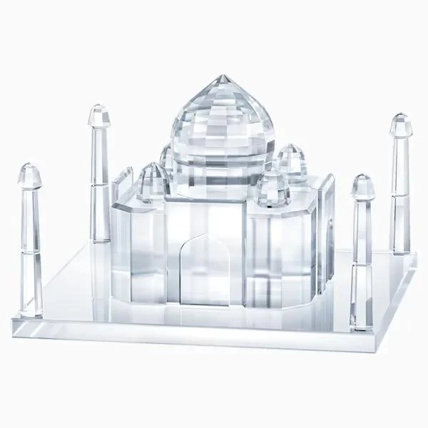 A universal symbol of love, the Taj Mahal is the latest landmark to receive a Swarovski interpretation. Designed entirely in clear crystal, this stunning piece is both modern and timeless, with bold and intricate facets creating brilliant sparkle. Remember a favorite holiday, or dream of your next destination, with this spectacular creation. A true delight for romantics and admirers of the famous Indian attraction, which is great for gifting. Decoration object. Not a toy. Not suitable for children under 15.
