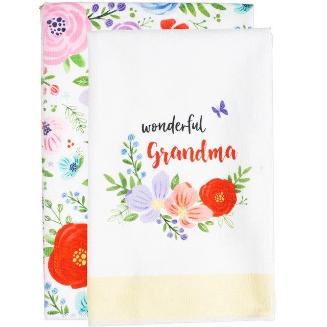 Wonderful Grandma Floral Tea Towels Gift Set Of 2
