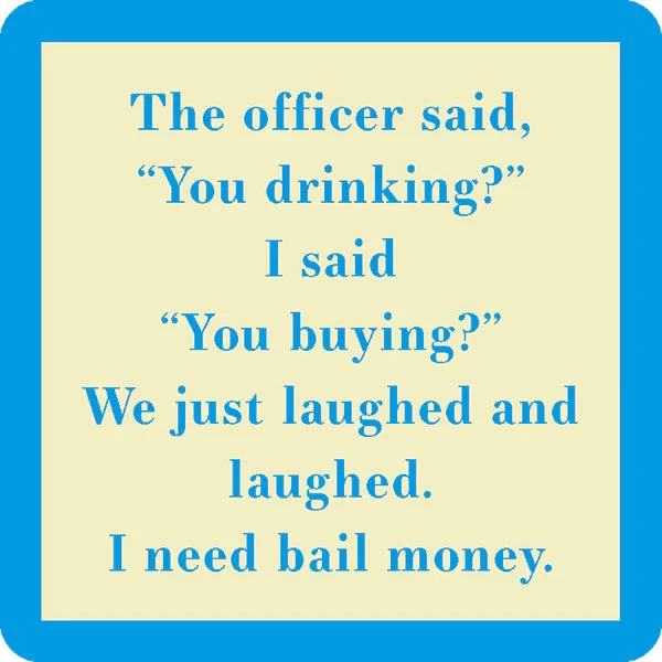 âThe officer said âYou drinking?â I said âYou buying?â We just laughed and laughed. I need bail money.â